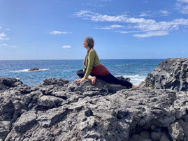 Fließende Yoga-Choreographien, verbunden durch den Atem und Mantra-Musik.
